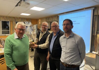 Für langjährige Vereinszugehörigkeit wurden zahlreiche Mitglieder ausgezeichnet: 34 Mitglieder für 25 Jahre, sechs für 40 Jahre, neun für 50 Jahre, zwei für 60 Jahre und Fritz Rogge für beeindruckende 70 Jahre aktiver Vereinstätigkeit. Die Geehrten erhielten Präsente und Urkunden als Dank für ihr Engagement.